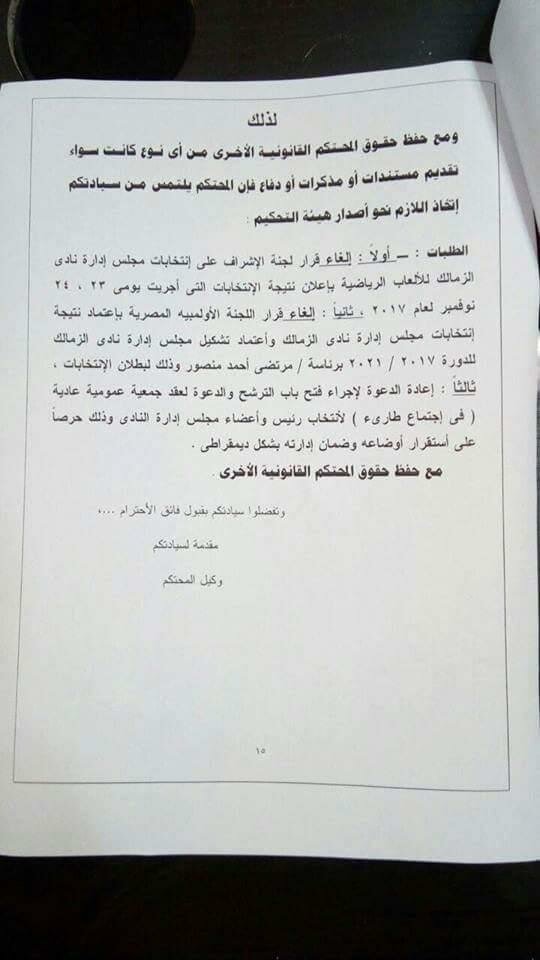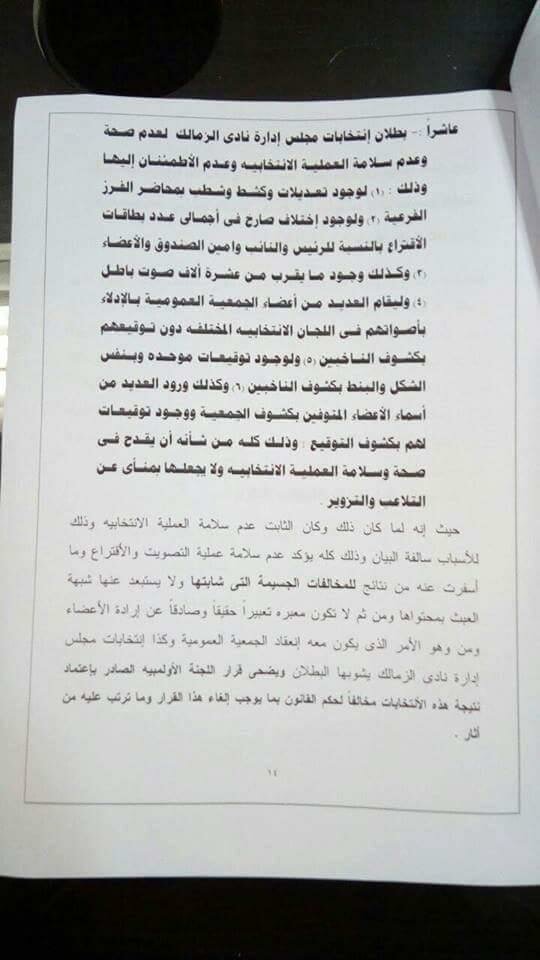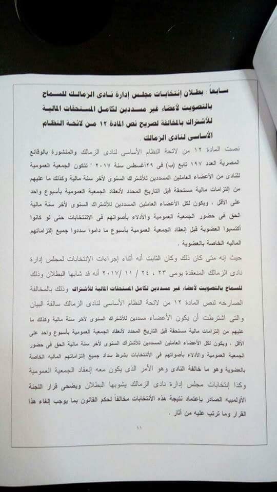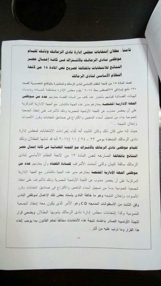 وكانت أسفرت نتيجة انتخابات الزمالك الاخيرة، عن فوز مرتضى منصور برئاسة النادى، وأحمد جلال إبراهيم وهانى العتال بمنصبى النائب، وحازم ياسين أميناً للصندوق، وفى العضوية، إسماعيل يوسف وهانى زادة وشريفة الفار وعلاء مقلد وعبدالله جورج.