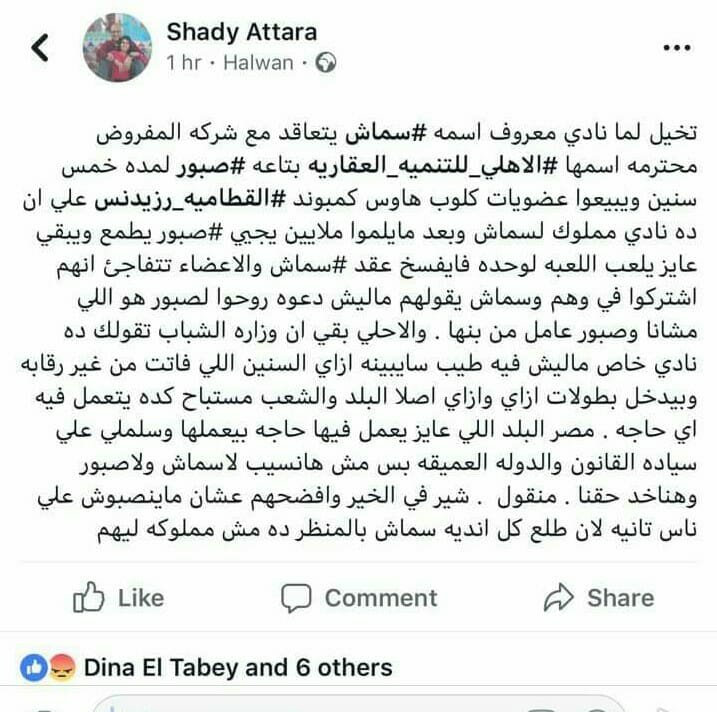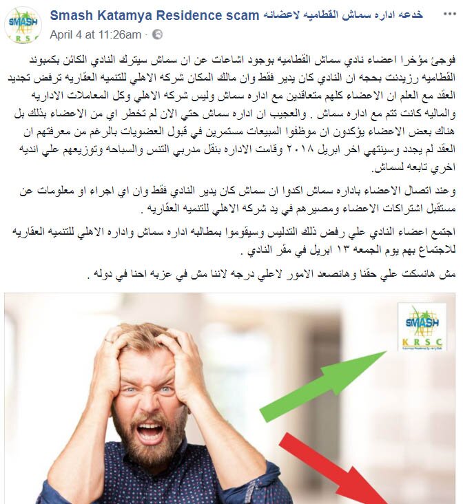 عبر عدد من أعضاء نادى سماش القطامية الرياضى، عن غضبهم من وجود إشاعات وأقاويل بالنادى أن شركة سماش ستترك النادى بداعى انها كانت تدير النادى فقط، وان المالك هو شركة الاهلى للتنمية العقارية, وأنها ترفض تجديد العقد لسماش..!!