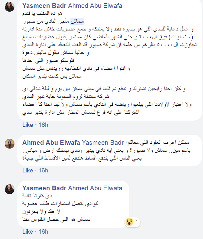 وأجمع اعضاء النادى على رفض ذلك التدليس الذى تعرضوا له، وطالبوا مسئولى نادى سماش ومسئولى شركة الأهلى للتنمية العقارية بالتوصل لحل معهم وما هو مصير عضوياتهم بالنادى، والا سيلجأوا للتصعيد واللجوء للقانون والقضاء.