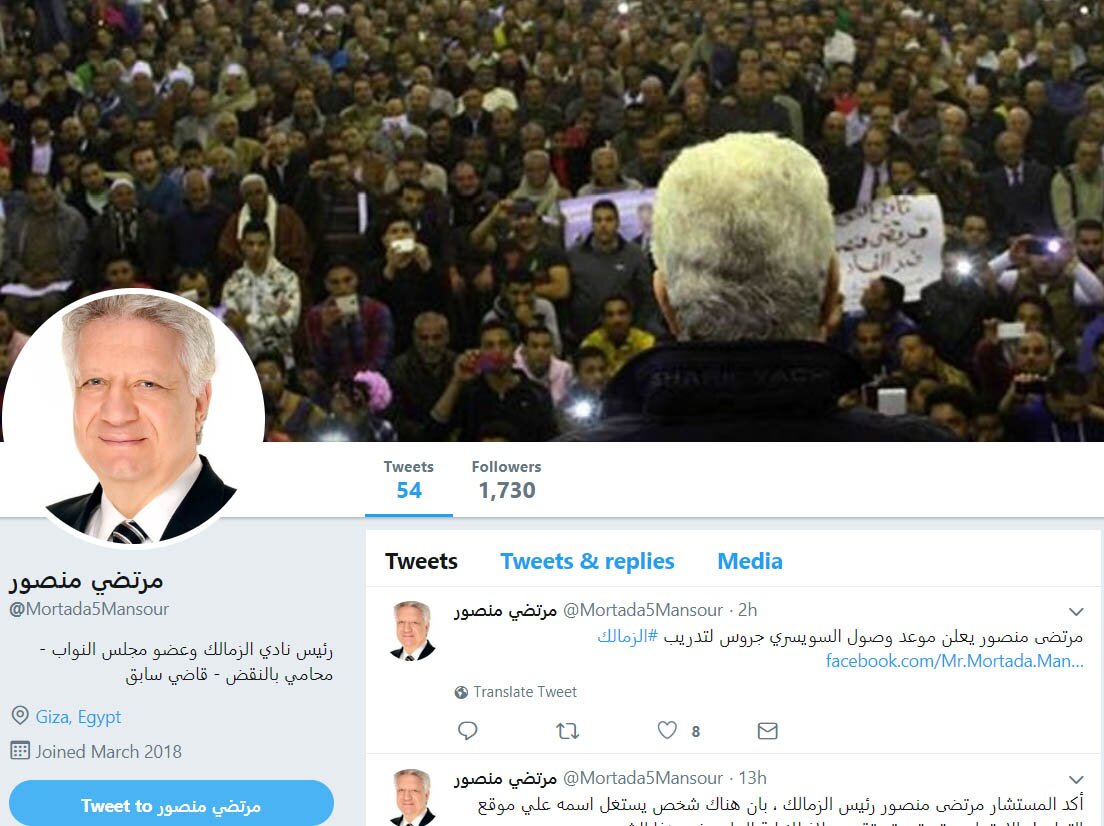 حساب مرتضى منصور على تويتر:
