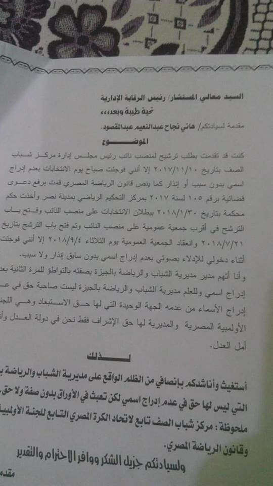 وقال خطب فى تصريحات خاصة أن اللجنة صاحبه الحق فى اعتماد الجمعية العمومية لاى ناد أو اتحاد أو رفضها وفقا للاجراءات التى أقيمت عليها مثلما كان الحال فى نادى الزمالك وأنه تم رفضها وعدم الاعتراف بها خاصة أن اللجنة حذرت قبل انعقادها بأنه لا يوحد عقد جمعيتين عموميتين فى يومين متتاليين.