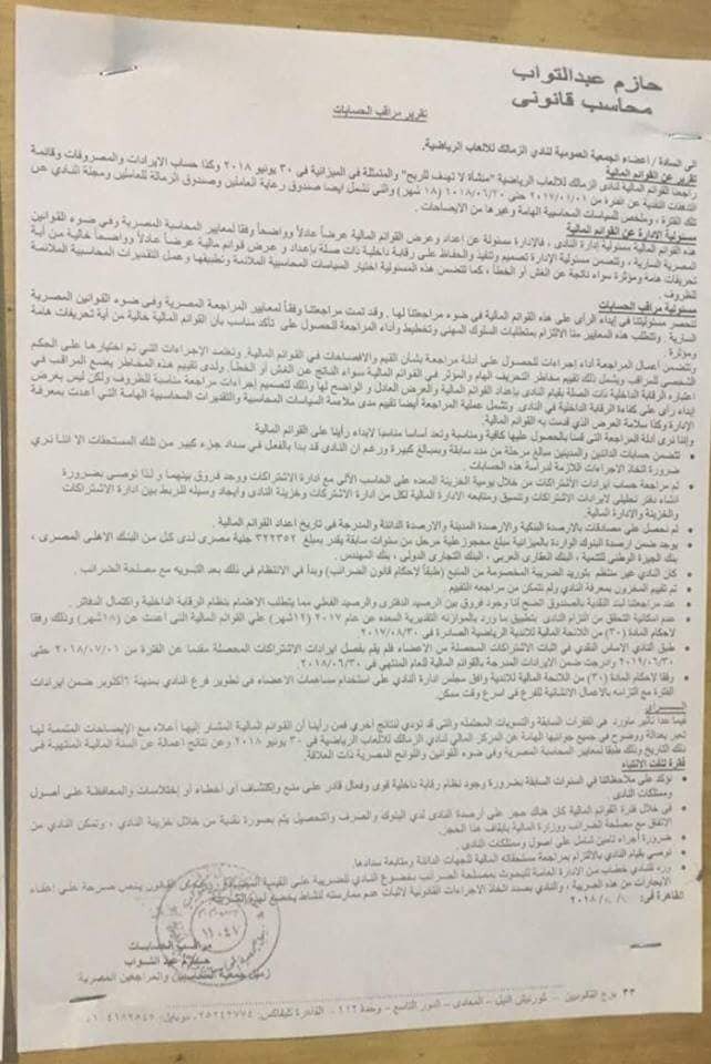 6 بنود هامة تقدم بها هانى العتال لالغاء الجمعية العمومية:.