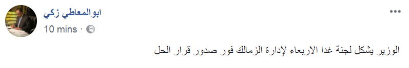 بعد تداول أنباء اليوم عن رفع الحصانة عن مرتضى منصور عضو مجلس النواب ورئيس نادى الزمالك، كشف الناقد الرياضى ابو المعاطى ذكى، عن تحضير وزير الرياضة لتشكيل لجنة ثلاثية طبقا للائحة النظام الأساسى لتدير النادى فور صدور قرار حل مجلس ادارة النادى رسميا غدا الاربعاء.